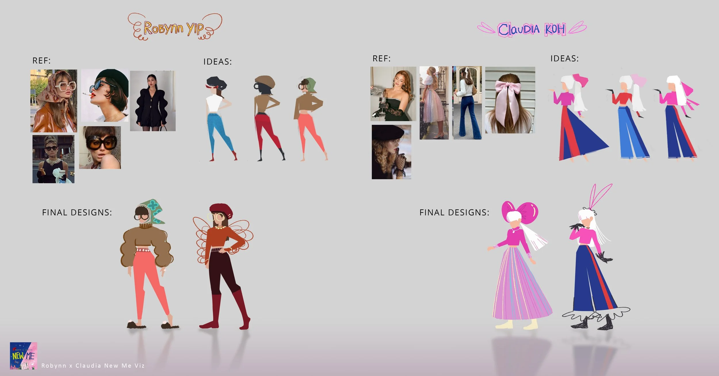 Referencing to their real life personalities, I’ve combined the sleek elegance of French woman with exagerated fashion accessories for Robynn, and the very cute yet slightly edgy and unpredictable personality for Claudia.